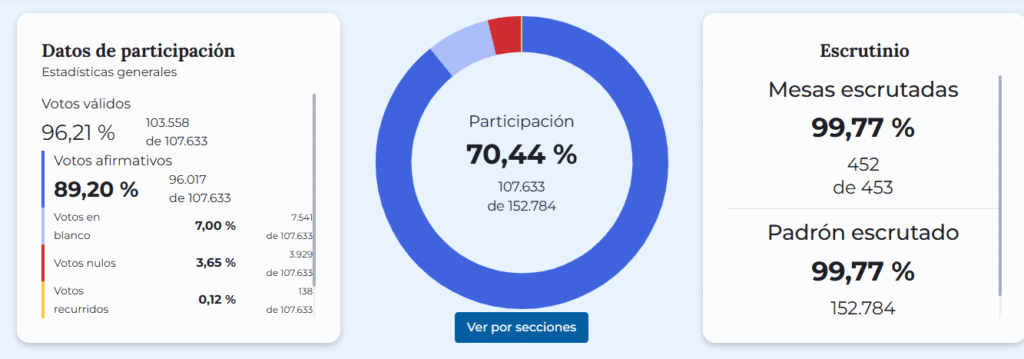 Los datos oficiales arrojan una participación del 70,44% de los 152.748 electores habilitados para votar con el nuevo sistema de Boleta Única Papel.