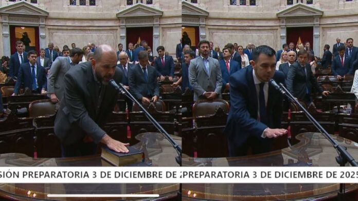 En este contexto, juraron los dos nuevos diputados fueguinos Miguel Rodríguez de La Libertad Avanza y Agustín Tita de Fuerza Patria. Durante la ceremonia, estuvo presente el gobernador Gustavo Melella quien hizo lo propio en la jura de los senadores que tuvo lugar el pasado viernes.