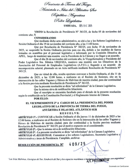 Tras el papelón del pasado 19 de noviembre, finalmente la Legislatura de Tierra del Fuego volverá a sesionar el próximo jueves 11 de diciembre a las 12 horas. Allí se pondrán a consideración de los 15 parlamentarios temas cruciales para una agenda política que ha tenido sobrada rosca, pero escasísima gestión.
