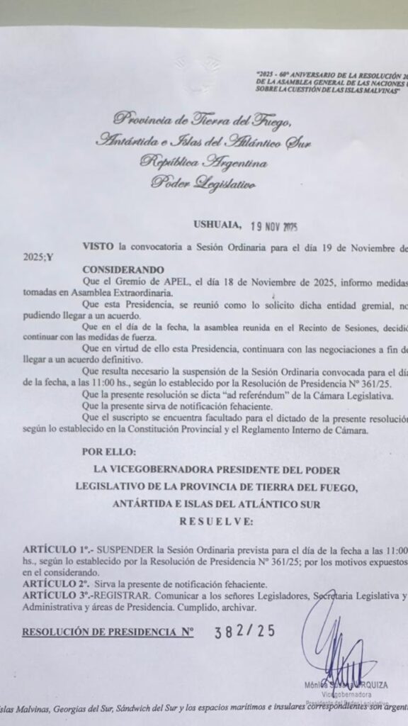 La Legislatura de Tierra del Fuego sumó un nuevo capítulo a su historial de eventos insólitos al suspender la Cuarta Sesión Ordinaria del año, un encuentro largamente postergado y que prometía abordar temas cruciales para la provincia.