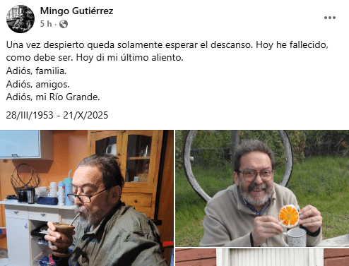Sin dudas partió un reconocido periodista, escritor, historiador, ex concejal de la ciudad y sobre todo, una persona querida por todo el mundo. La noticia de su fallecimiento sacudió a toda la comunidad de Río Grande. Mingo dedicó más de cuatro décadas al rescate y la difusión de la historia fueguina. Su voz y su pluma fueron clave para preservar testimonios, hechos y relatos que dieron forma al desarrollo de Tierra del Fuego.