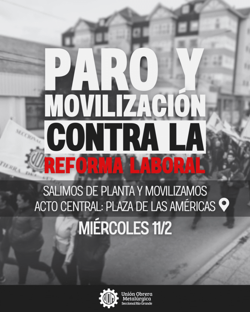 A través de un comunicado oficial, la Unión Obrera Metalúrgica (UOM) Seccional Río Grande ratificó el estado de alerta y movilización, convocando a todos los trabajadores del sector a un cese de actividades y una marcha hacia el centro de la ciudad para este miércoles.