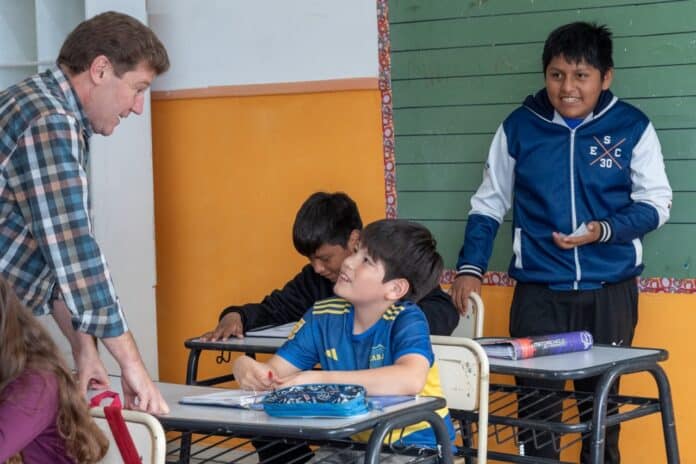 El Gobernador Gustavo Melella visitó este miércoles la Escuela N° 13 de la ciudad de Ushuaia, uno de los establecimientos educativos donde se lleva adelante el “Programa Provincial de Fortalecimiento Educativo” durante el receso de verano. La iniciativa, de la que ya participan más de 400 niñas y niños, propone actividades educativas, lúdicas, artísticas, recreativas y deportivas, todas a cargo de docentes.